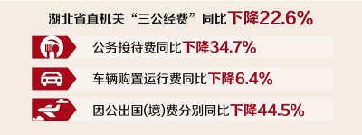 据湖北省纪委介绍,截至目前,湖北省直机关“三公经费”同比下降22.6%,其中公务接待费、车辆购置运行费、因公出国(境)费同比分别下降34.7%、6.4%、44.5%,收回省直单位干部职工违规多占住房712套,清理违规配备使用的公务用车1073辆,查处违反财经纪律问题资金901万元。特别是对顶风违纪的问题绝不手软,处理党员干部2445名,其中县处级以上党员干部51人。
