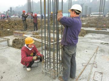 “我从成都金堂来,”正忙着捆扎钢筋的罗开翠告诉记者,“工期紧,晚上还常常加班几个小时”。罗开翠把这份工作当做是支援灾区建设,“赶快帮受灾群众把新房子修好。”