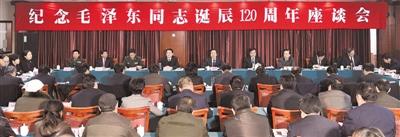 12月25日,我省在平山县西柏坡举行纪念毛泽东同志诞辰120周年座谈会。图为座谈会会场。