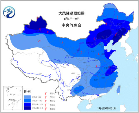冷空气带来雨雪天气的同时,北方大部及长江中下游地区还将先后出现4到6级偏北风,气温下降6至10℃、局地12至14℃;西南地区东部、江南、华南等地降温4至8℃。其中,5日至6日新疆山口地区风力可达8到9级。