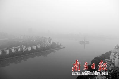 韶关市区昨日被雾霾笼罩。谷立辉 许张龙 张伟 摄