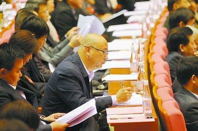 市第十四届人大三次会议上,代表们认真听取政府工作报告。