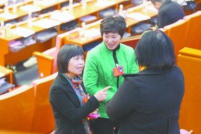 市人大代表在会议间隙进行交流。