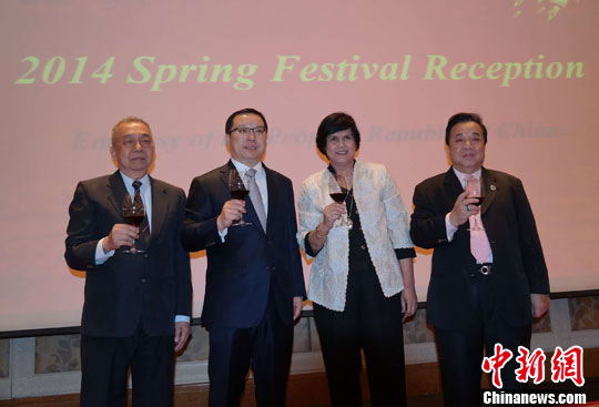 中国驻菲律宾大使馆27日在菲首都大马尼拉地区马卡蒂市举行春节招待会,数百位旅菲的华侨华人、留学生、志愿者老师、中资机构人员代表等欢聚一堂,共庆新春佳节。孙向阳在招待会上致辞时说,2013年,面对纷繁复杂的国际形势,中国经济持续发展,社会保持稳定,综合国力进一步提升。中国全面发展同世界各国友好关系,坚决维护国家主权、安全和发展利益,维护国际公平正义,发挥负责任大国作用。我们朝实现“两个百年”的奋斗目标和中华民族伟大复兴的“中国梦”迈进了扎实一步。