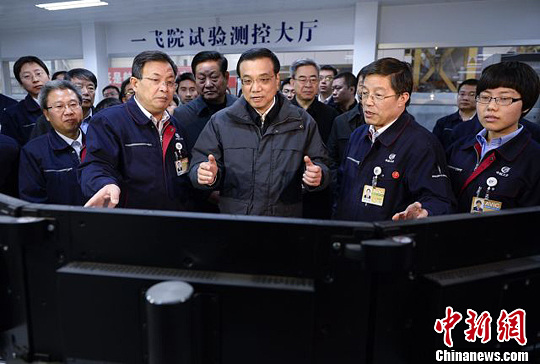 28日,李克强总理到中航工业第一飞机设计研究院考察。刘震 摄