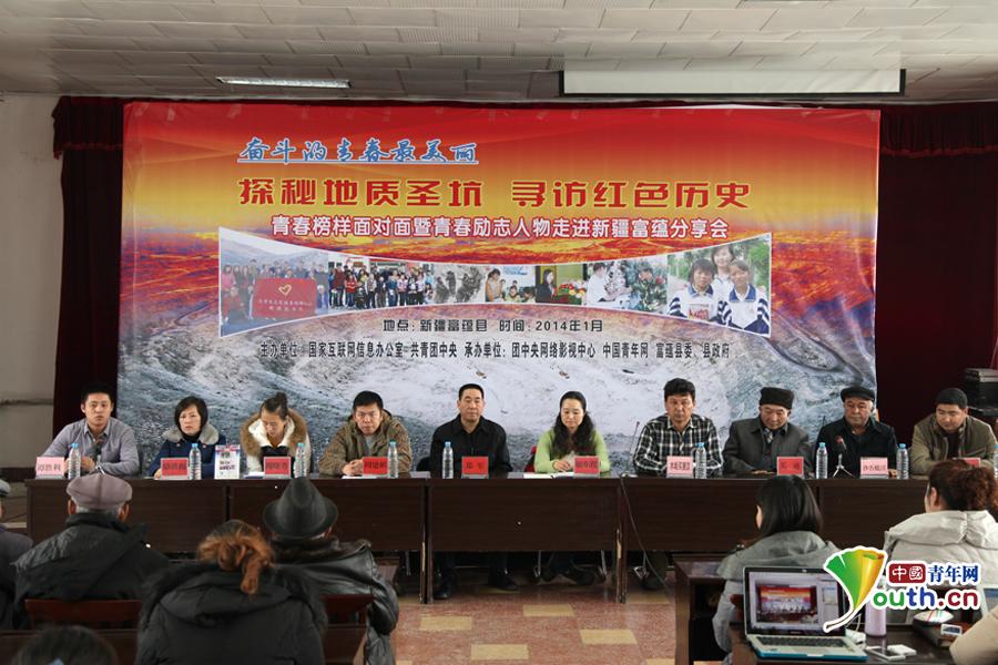 1月22日,奋斗的青春最美丽·青春榜样面对面活动在新疆富蕴县举行。此次分享会的主题是“探秘地质圣坑,寻访红色历史”。新疆可可托海矿务局一矿原党总支副书记、可可托海矿务局退委会书记买迪·纳斯依,新疆可可托海矿务局行政办公室原副主任沙吾提江·木哈买提江,2012年全国优秀志愿者、甘肃省张掖市山丹育才中学教师周晓芳,第一批西部计划志愿者、新疆于田县广播电视局副局长骆洪梅以及新疆稀有金属公司宣传干事谭胜利等在现场和各族青年代表分享了各自的奋斗故事并做了互动交流。