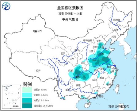 中央气象台继续发布大雾黄色预警:预计,今天早晨到上午,华北东部和南部、黄淮大部、江淮、江汉以及西南地区东部等地有大雾,其中河北南部、天津、山东中西部、河南中东部、江苏中北部、安徽北部、四川盆地东部、重庆等地的部分地区有能见度不足500米的浓雾,局地有能见度不足200米的强浓雾。