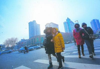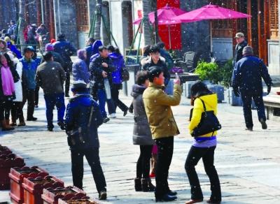 昨天南京街头,市民在拍“太阳雪”。范晓林 摄