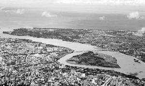 开发建设中的南渡江两岸和司马坡岛。 本报记者 李汉仁 摄