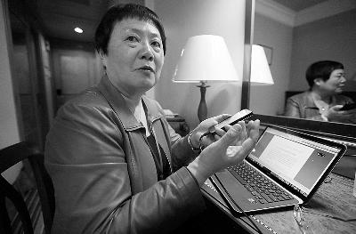 ▲昨日,全国政协委员金蔚向记者展示默哀图片在手机微博、微信上被大量传播 摄/法制晚报记者 温如军