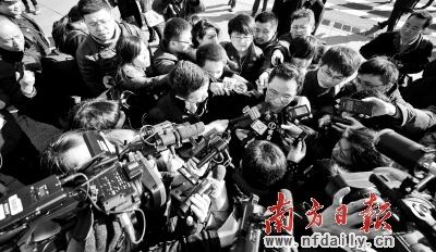 代表钟南山入场时被众多媒体围堵。南方日报特派记者张由琼摄