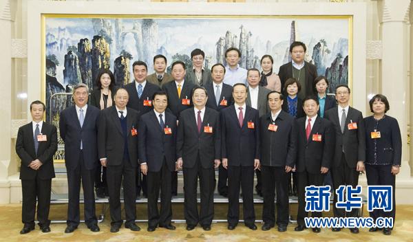俞正声看望参加政协十二届二次会议报道新闻工作者