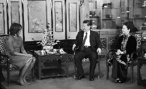 习近平和夫人彭丽媛会见美国总统奥巴马夫人米歇尔。新华社发