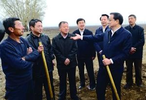 3月28日,中共中央政治局常委、国务院总理李克强在赤峰市喀喇沁旗牛家营子镇中草药基地与农民亲切交谈。 本报记者 袁永红 摄
