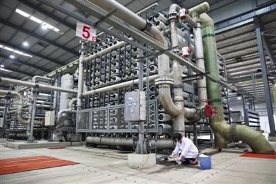 “每1吨海水可生产出0.46吨的淡水,供给企业使用”,工作人员介绍,剩下54%的浓盐水并不是直接排放到海里,而是通过管道被输送到附近的三友化工,作为制碱制盐的“主角”,实现循环利用。