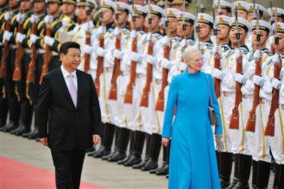24日,国家主席习近平欢迎来访的丹麦女王玛格丽特二世。