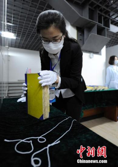 近日,吉林省档案馆公布了一批新整理、发掘的日本侵华档案,包括关东宪兵队司令部档案87件,伪满中央银行档案2件。档案共分八个方面:南京大屠杀、强征“慰安妇”、731部队“特别移送”、残酷奴役劳工、日军暴行、对中国东北实施移民侵略、镇压东北抗日联军、审讯和虐待英美战俘。图为吉林省档案馆工作人员在整理馆藏的日本侵华档案。张瑶 摄