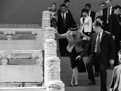 丹麦女王游长陵,差点儿摔一跤 摄/法制晚报记者 吴海浪