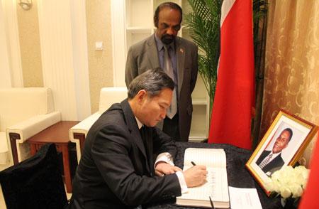张昆生赴特立尼达和多巴哥使馆吊唁特多前总统