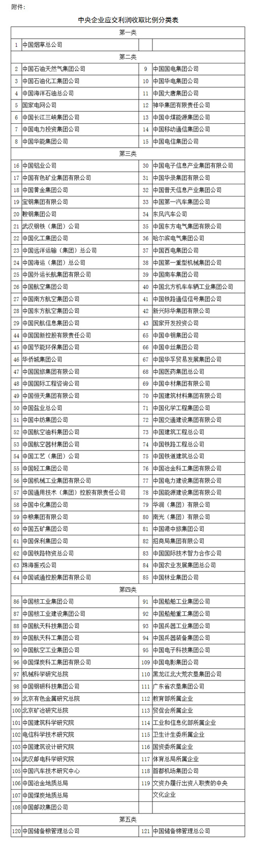 《通知》明确,国有独资企业应交利润收取比例在现有基础上提高5个百分点,即:第一类企业为25%;第二类企业为20%;第三类企业为15%;第四类企业为10%;第五类企业免交当年应交利润。符合小型微型企业规定标准的国有独资企业,应交利润不足10万元的,比照第五类企业,免交当年应交利润。