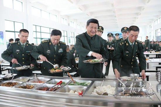2012年12月10日,中共中央总书记、中共中央军委主席习近平在广州军区某装步营,与官兵共进午餐。