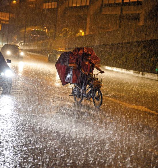 昨日19时30分许,广州市突降暴雨,路上行人避之不及