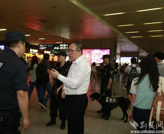 四面八方的旅客不断汇聚,站前广场和进站口人流涌动。正在这里执勤的武汉市公安局特警、站前派出所民警和外围武警,一边维持秩序,一边以警惕的眼光守护着这里的安全。