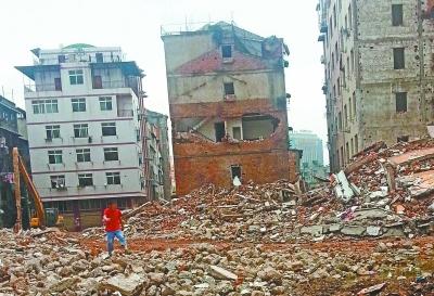 相似的情况出现在武昌区三角路“城中村”改造项目工地。记者在工地上看到,三层楼高的房子被拆得只剩一堵墙(如图),但紧邻墙体,却有一条小道供社区居民往来。工作人员称,这是为方便居民出行。而紧邻这堵墙还有户居民未搬离。
