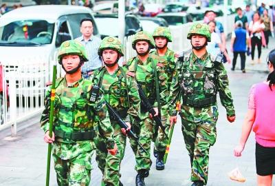 图为武警武汉市支队官兵在街头武装巡逻。记者 何晓刚 通讯员 张志伟 王继光 摄