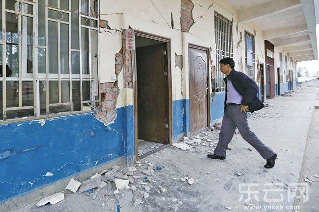 地震造成盈江县多所学校受灾。卡场镇五排小学的教学楼受损严重,已成危房。新华社供图