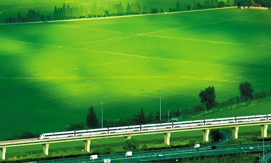 广东省中山市崖口村段城际轨道列车经过的场景 谢儒侦 摄