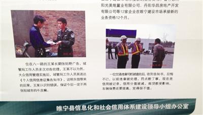 睢宁县征信办的展板上,宣传类似贴小广告,交通违法等行为将被扣信用分。