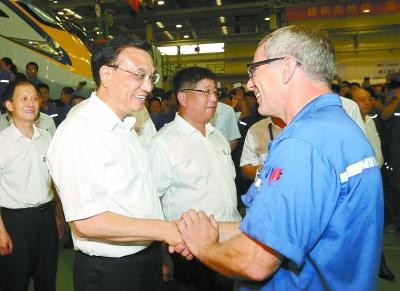 7月4日上午,李克强走进南车株机。他健步登上机车装配生产线,体验中国装备的最新成果。