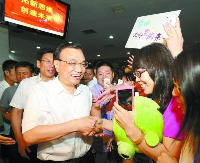 7月4日,李克强总理在拓维信息系统股份有限公司考察,与员工亲切握手。