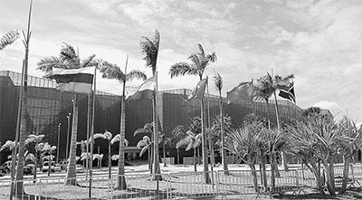 在主会场塞阿腊州会展中心外,金砖国家的国旗迎风飘扬。本报记者 颜 欢摄