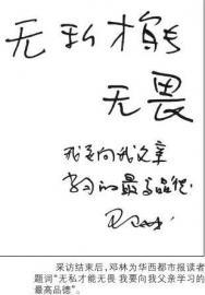 ﹃无私才能无畏﹄,这是邓小平一生崇高品德的真实写照。