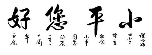 8月18日,傍晚。武昌中北路一幢写字楼里,胡圣虎认真调好墨,先在一张草稿纸上练了几笔,再认真铺好一张宣纸,凝神定气,挥毫泼墨,为我们写下这幅“小平您好”!