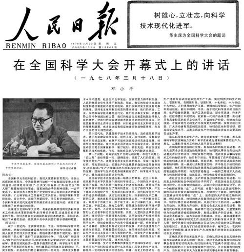 人民日报 1978.03.22第1版《在全国科学大会开幕式上的讲话》