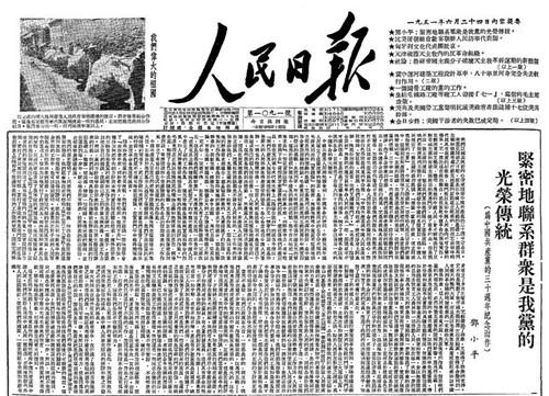 人民日报 1951.06.24第1版《紧密地联系群众是我党的光荣传统》