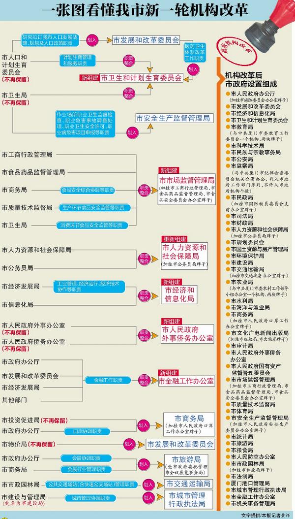 厦门启动新一轮政府机构改革 减少6个市级机构