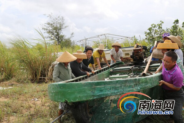 “大家再加把劲,争取把这些渔船早点拖回海里,渔民早日恢复生产。”17日上午,台风过后的海口南港码头一片热火朝天,海口市秀英区委副书记、政法委书记王晓龙,西秀镇委书记李可业亲自带着镇、村干部、联防队员共100多人冒着瓢泼大雨,出动3辆推土机,把台风前拖拽在岸边的渔船拖回海里,帮助新海村渔民尽快恢复生产,出海打渔。