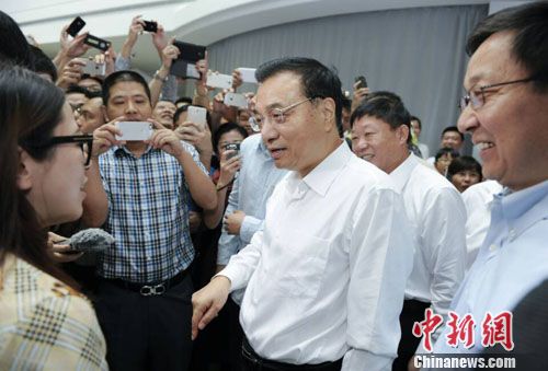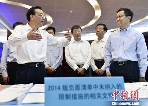 中新网上海9月18日电(记者 郭金超) 李克强总理18日到上海自贸区综合服务大厅考察,管委会负责人介绍负面清单较去年大大“瘦身”时,首先“表扬”各部委做了“大量工作,给了很大支持”。李克强摆摆手说:“我今天不问各部委为自贸区支持了什么,我更想知道他们还可以再支持什么?