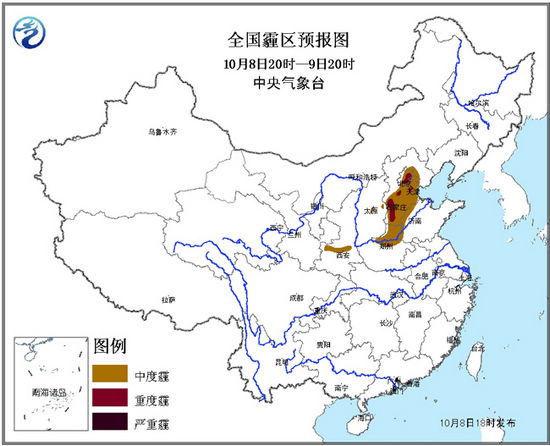 中新网10月9日电 中央气象台10月9日06时继续发布霾黄色预警:预计9日08时至10日08时,北京大部、天津、河北中南部、山东西部、河南中北部、山西南部及陕西关中等地的部分地区有中度霾,其中北京中东部、河北西部沿山局地有重度霾。另外,9日上午,华北中南部、河南西北部、陕西北部和关中等地的部分地区有能见度不足1公里的大雾。