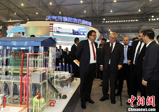 中新网成都10月24日电 (记者 安源徐杨祎)24日,正在四川成都访问的捷克共和国总统米洛什·泽曼前往第十五届中国西部国际博览会主展馆参观。