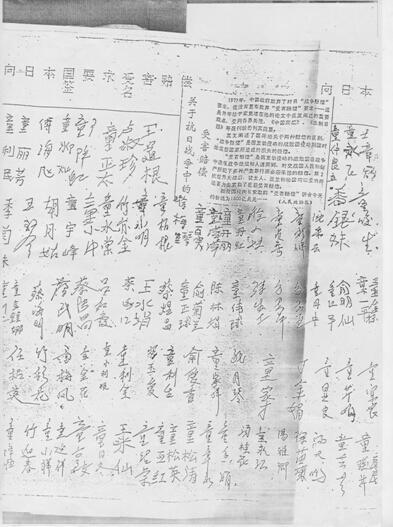 下王镇向日本要求受害赔偿的部分签名者手迹