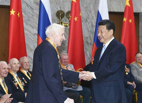 习近平主席对俄罗斯老战士说:“我过去给你颁奖”