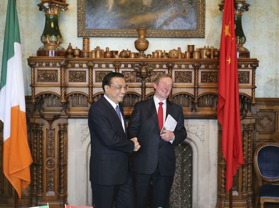 李克强表示,我与肯尼总理就中爱关系和共同关心的广泛议题深入交换了意见,一致认为,中爱互利合作领域广泛,空间广阔。中方愿同爱方坚持互利互惠、友好互鉴,加强各层级交往,深化各领域合作,通过开展更多文化交流,夯实两国关系民意基础。中方欢迎爱尔兰高质量、有竞争力的产品进入中国市场,也愿将爱尔兰作为联合开展三方合作的伙伴。相信经过双方共同努力,中爱关系一定会再上新台阶。