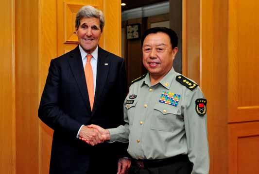 克里说,两国元首达成的加强双边合作的重要共识,对美中两军关系同样适用。保持稳定和建设性的两军关系,对双边关系有着重要作用。希望美中两军在反海盗、人道主义救援等领域开展更多务实合作,推进海空相遇安全行为准则等信任措施建设,增进沟通和互信,防止不安全事件发生。克里重申了美国政府在南海问题上不选边站队的立场,表示对其他当事国将一视同仁,近期有关媒体报道并不是美国政府的政治决定。