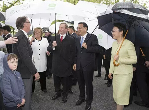 当地时间17日下午,正在爱尔兰过境访问的国务院总理李克强和夫人程虹在爱尔兰总理肯尼夫妇陪同下,参观了位于香农的加维农场。