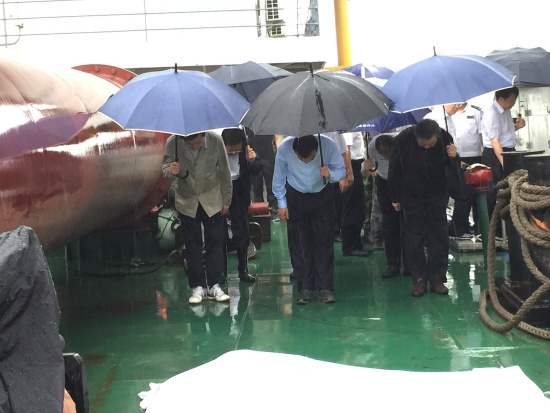 中新网湖北监利6月3日电 (记者 郭金超)3日上午,李克强总理再次来到客船翻沉事件救援现场。在大雨中,总理及随行人员向遇难者遗体三鞠躬并默哀。